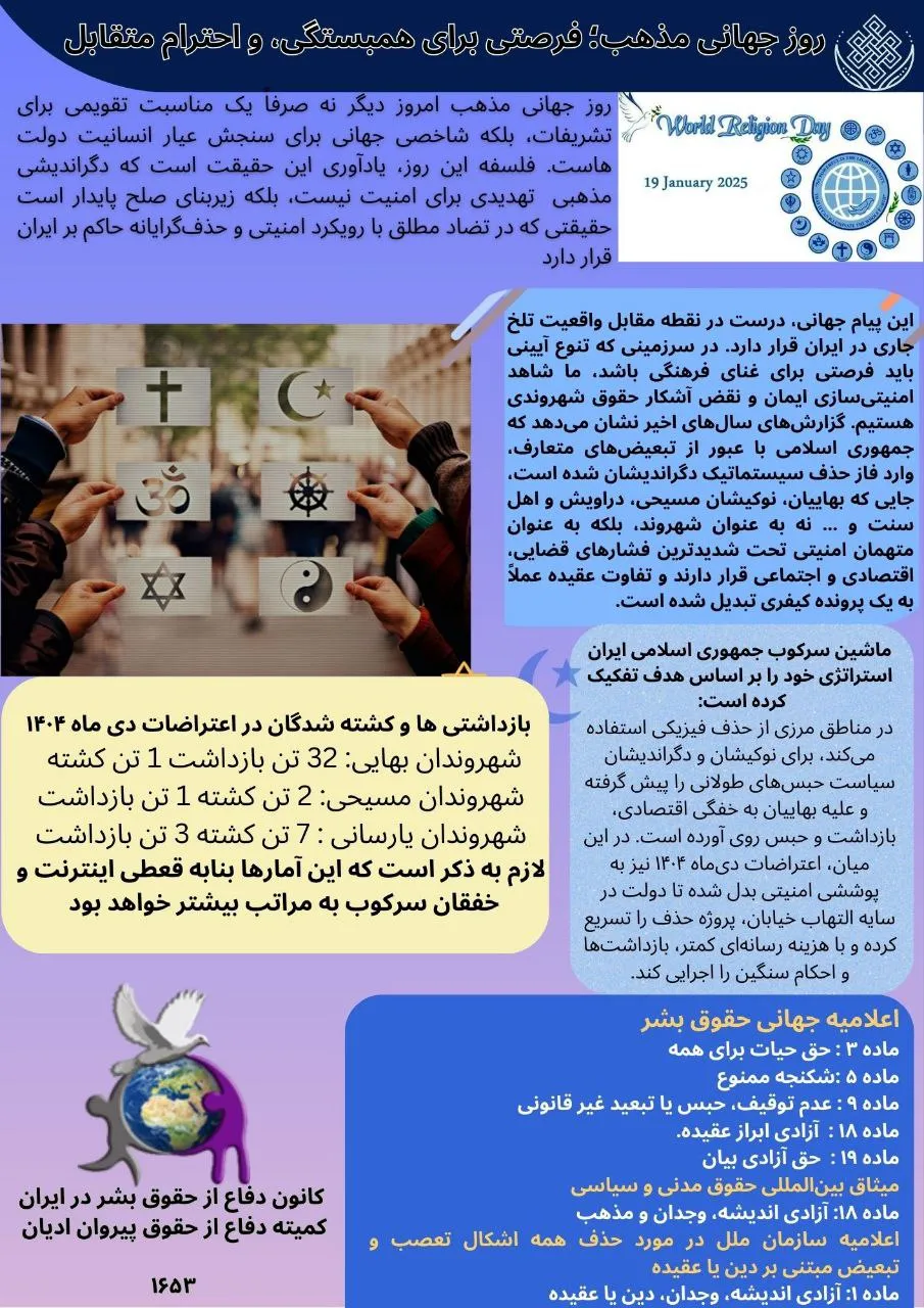 اطلاعیه ۱۶۵۳ کمیته دفاع از حقوق پیروان ادیان با موضوع روز جهانی مذهب